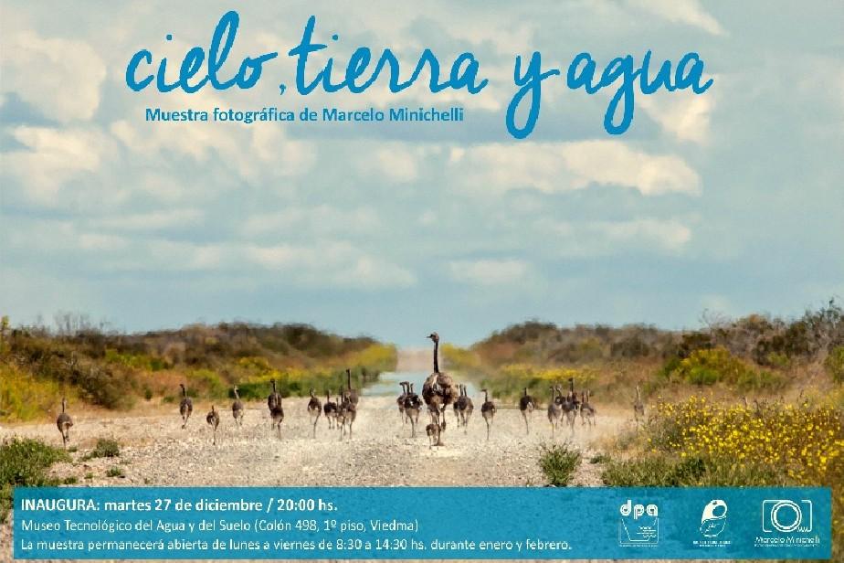 El Departamento Provincial de Aguas (DPA) invita a la comunidad a la inauguración de la muestra fotográfica "Cielo, Tierra y Agua" de Marcelo Minichelli, que se inaugurará hoy martes a las 20, en el Museo Tecnológico del Agua y el Suelo.