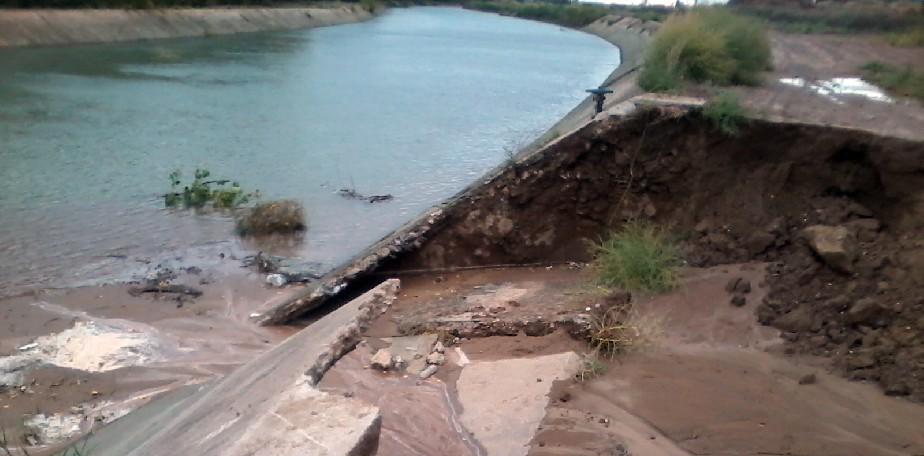 El ministro de Obras Públicas, Julio Arrieta y la superintendente del Departamento Provincial de Aguas, Raquel Morales, se reunieron con representantes de los consorcios de riego a fin de evaluar la rotura del canal principal de riego del Alto Valle.