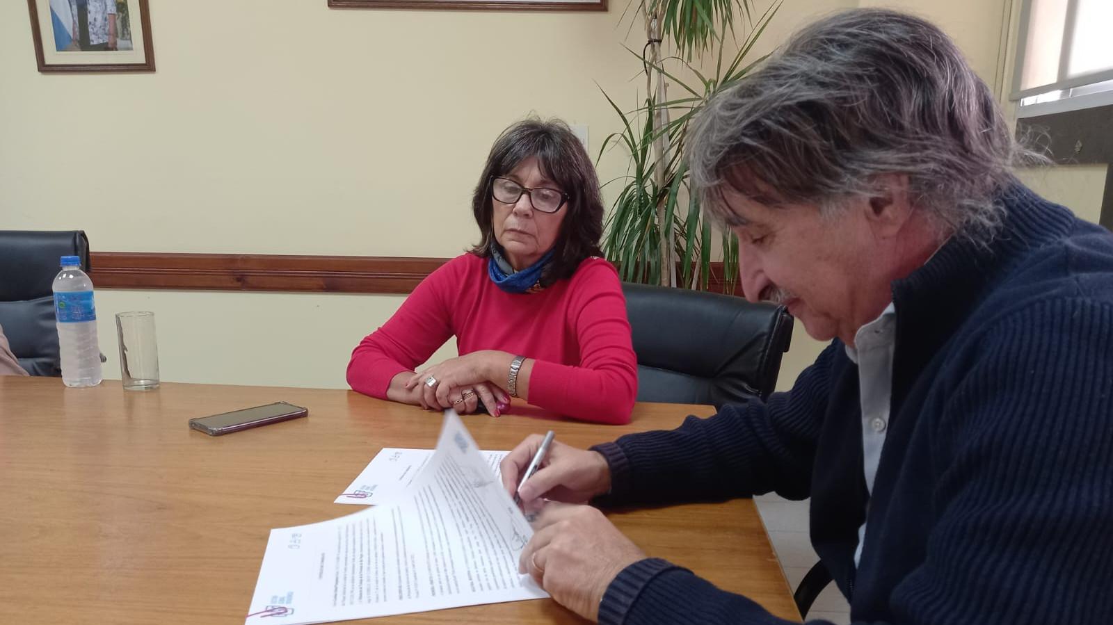 El ministro de Trabajo, Jorge Stopiello, firmó un convenio con la empresa Gestión Global Patagónica S.A.S, representada por Mirta Mendoza, donde se acordó el resguardo de los documentos Ministeriales.