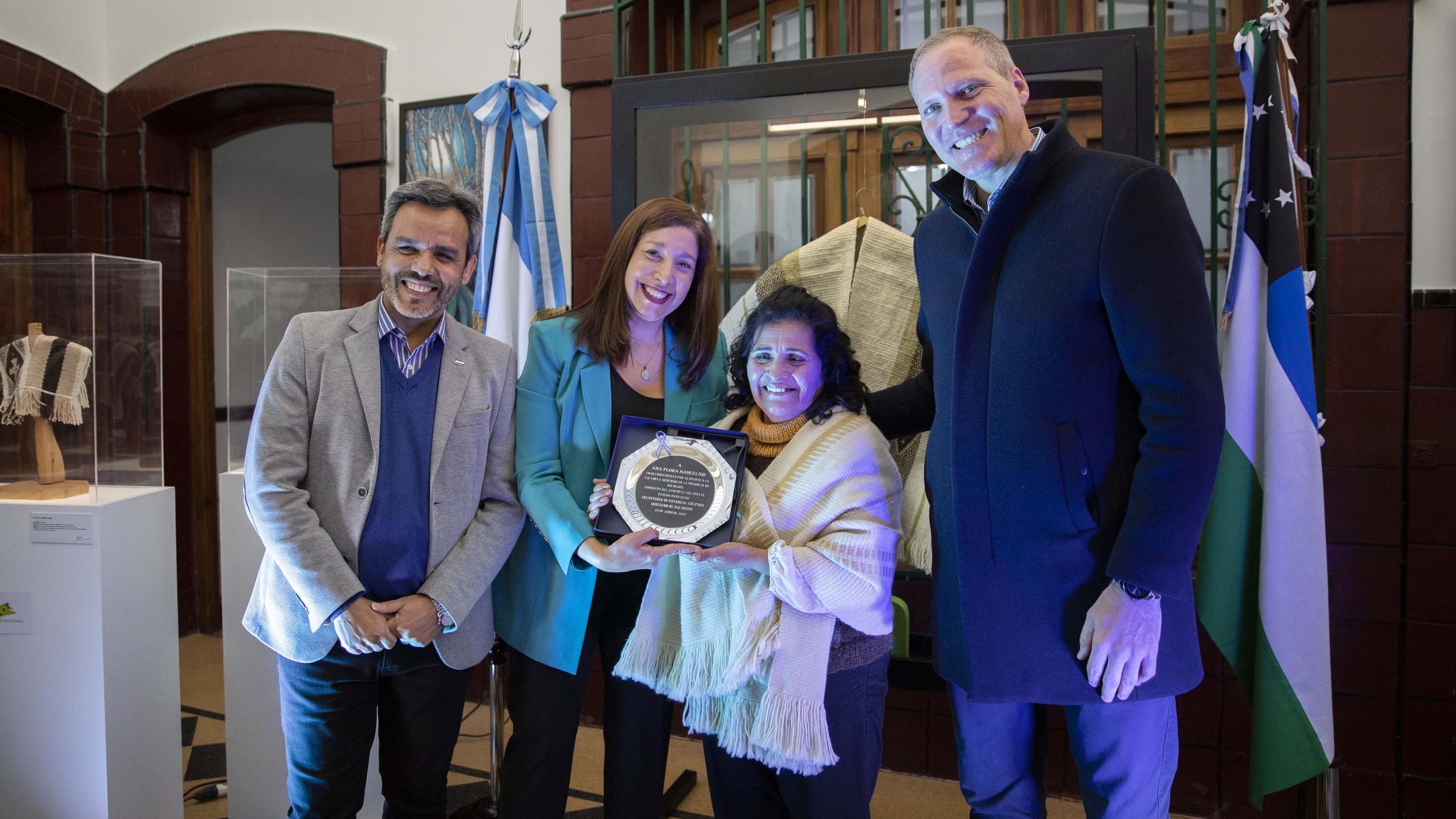 En el marco del aniversario 67º de la provincialización de Río Negro, la Gobernadora Arabela Carreras encabezó hoy en Viedma la apertura de la muestra cultural “Ser Río Negro” donde se presentó el primer poncho rionegrino, creado por Ana Flora Nahuelñir.