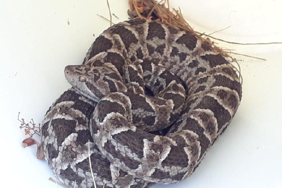 Personal del Área de Control y Fiscalización de la Dirección de Fauna Silvestre, con asiento en General Roca, logró capturar una serpiente Yarará que se encontraba en el patio de una vivienda en el Lago Pellegrini.